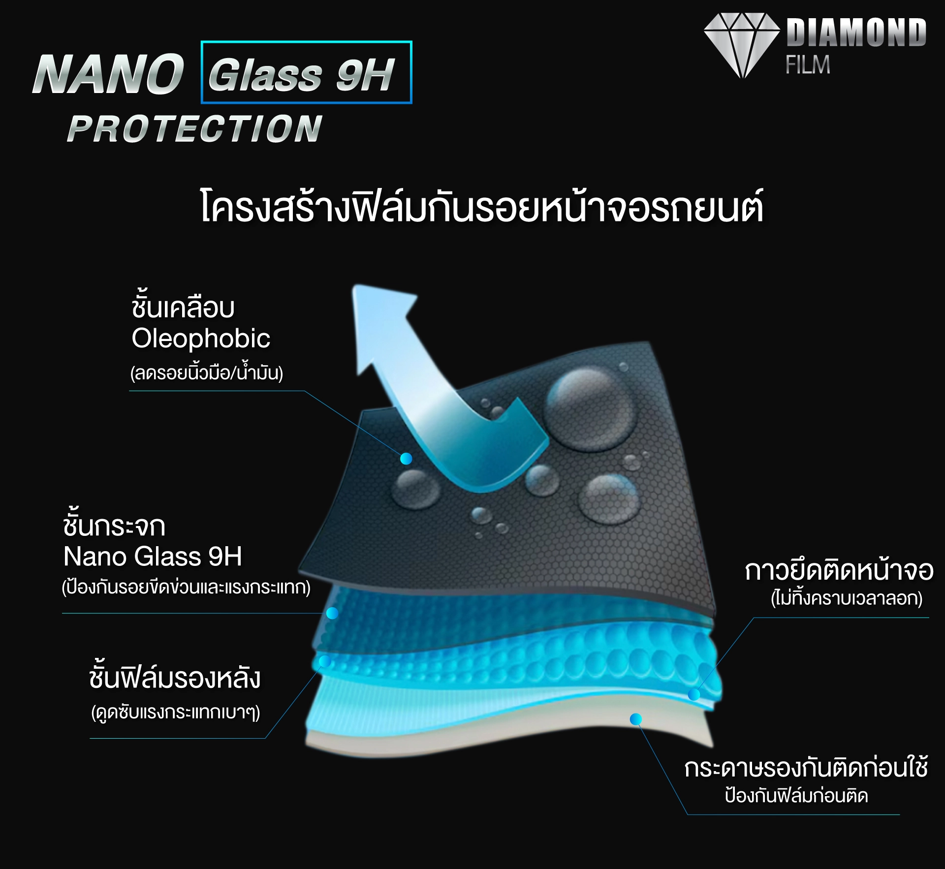 คุณสมบัติหลักของฟิล์ม Nano Glass 9H Protection