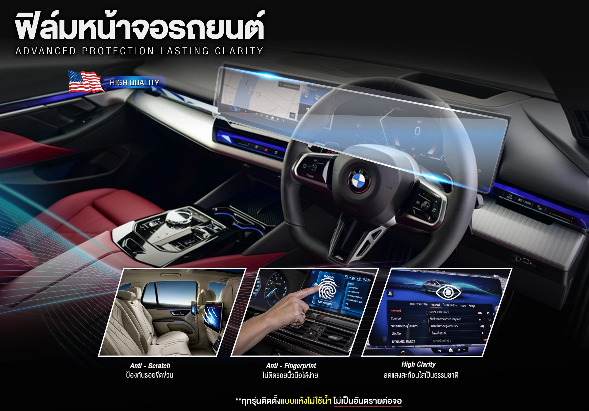 • ฟิล์มมีความใสสูง ทำให้เห็นภาพบนหน้าจอได้ชัด ผิวสัมผัสลื่น